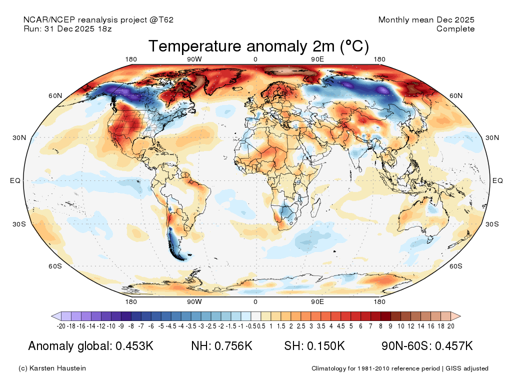 NCEP/NCAR: +0.45° base 1971-2010) - NASA/GISS: +0.° (base 1981-2010)