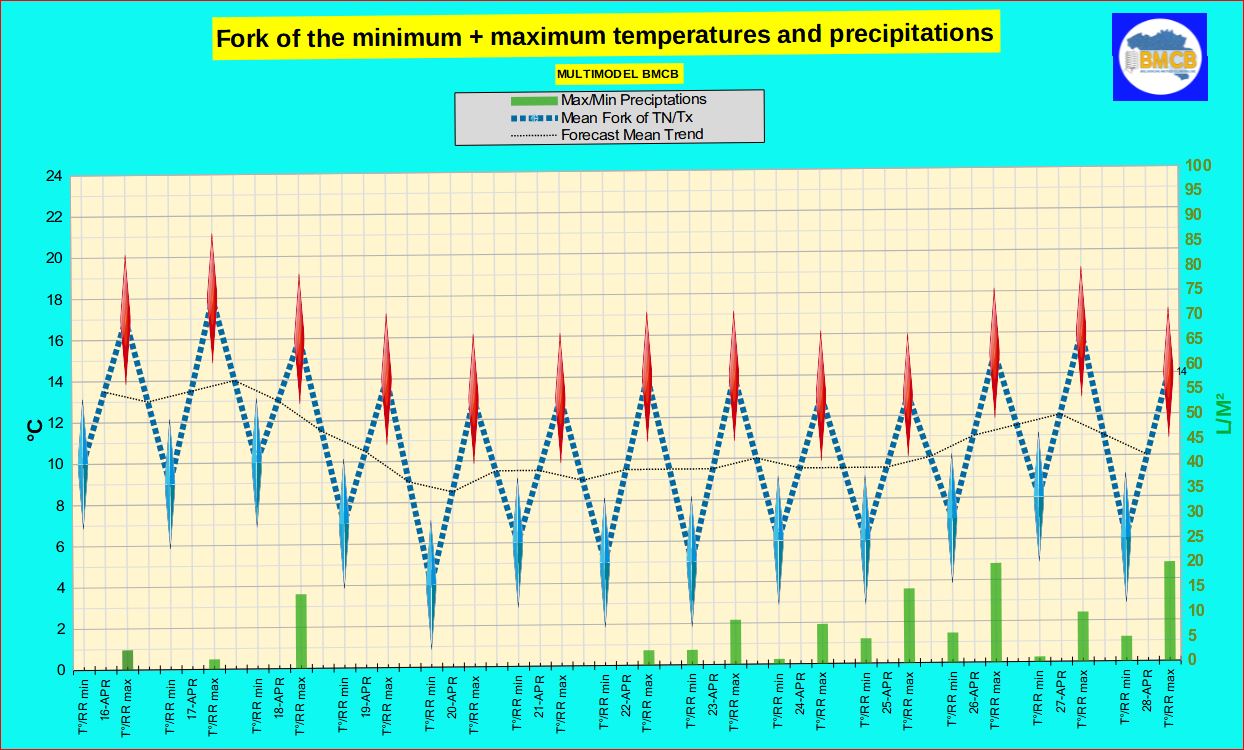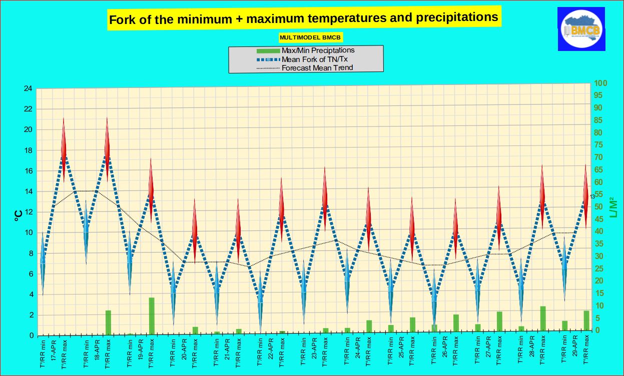 En fin de période, vers le 28 avril, une tendance plus fraîche apparaît, accompagnée de nouvelles pluies ou averses parfois assez marquées.