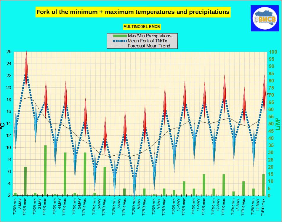 Synthèse de l'évolution météorologique selon le multimodèle BMCB
