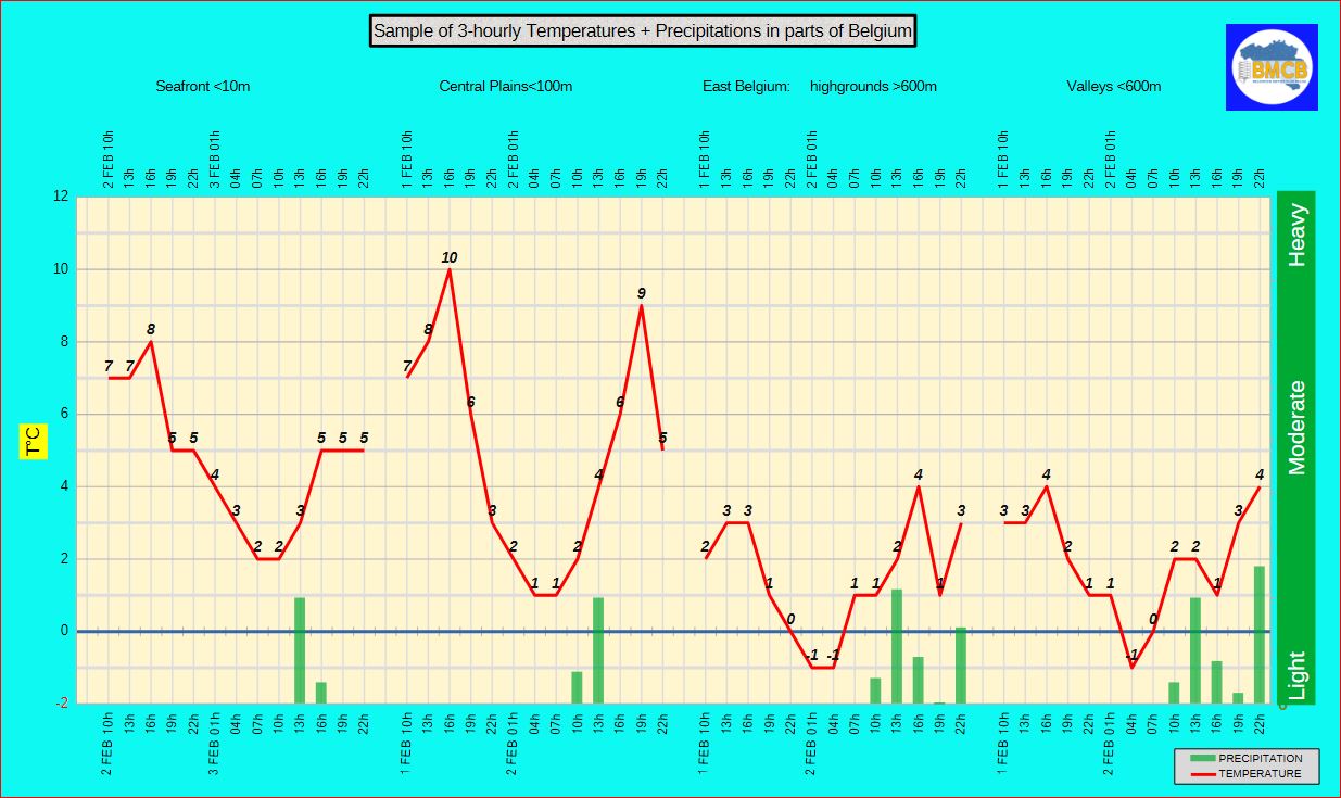 🌡 Höchstwerte: ca. 8°C an der Küste, 5–10°C im Landesinneren, 3–4°C in den Hohen Ardennen
